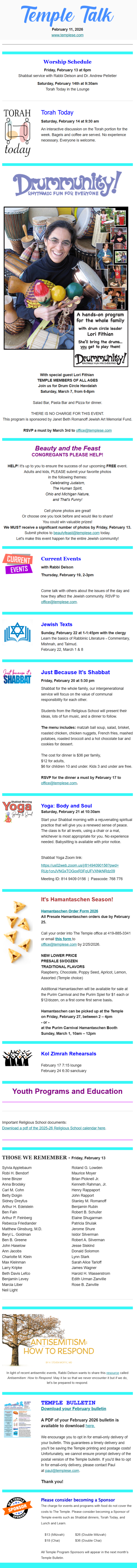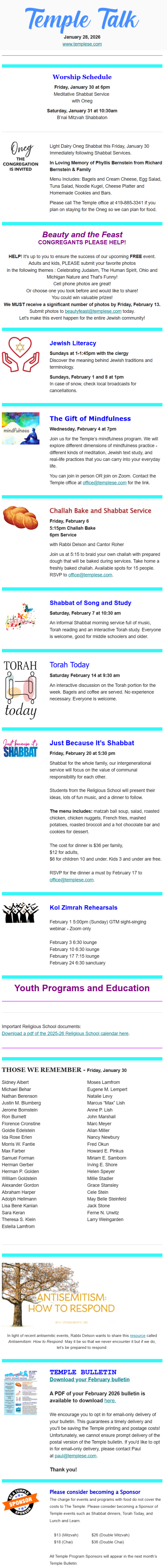 If you are looking for an opportunity to celebrate your simcha with members of your congregational family and your other guests on Shabbat, consider hosting one of the following opportunities: