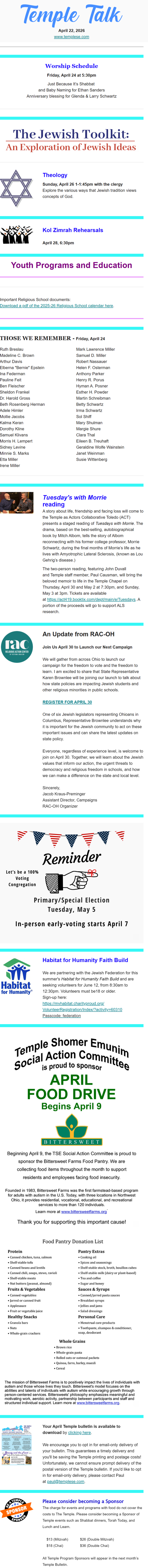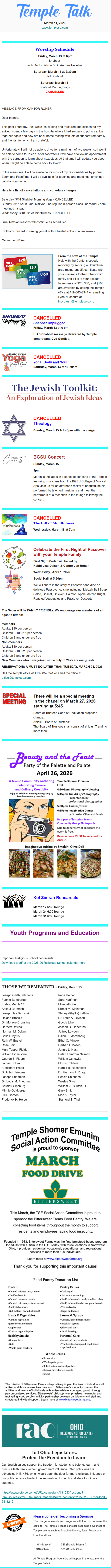 It is the mission of Congregation Temple Shomer Emunim to meet the religious, spiritual, educational, and social needs of our congregants within the context of Reform Judaism, while we seek to perpetuate Reform Judaism, the Jewish people, and the State of Israel.
